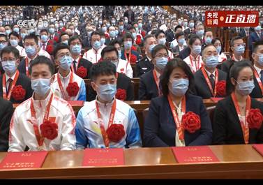 2020级工业工程与管理专业硕士研究生冯益为荣获“北京冬奥会、冬残奥会突出贡献个人”,作为全国获此殊荣的5名学生志愿者之一,参加大会并上台领奖。