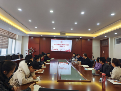 在经管楼A215会议室召开意识形态工作专题整改会。学院党委书记张振华、正处级专职辅导员刘琳、副院长陈晶璞、党委副书记张志超、学院各教职工党支部书记、学生党支部书记,科级干部参加会议。