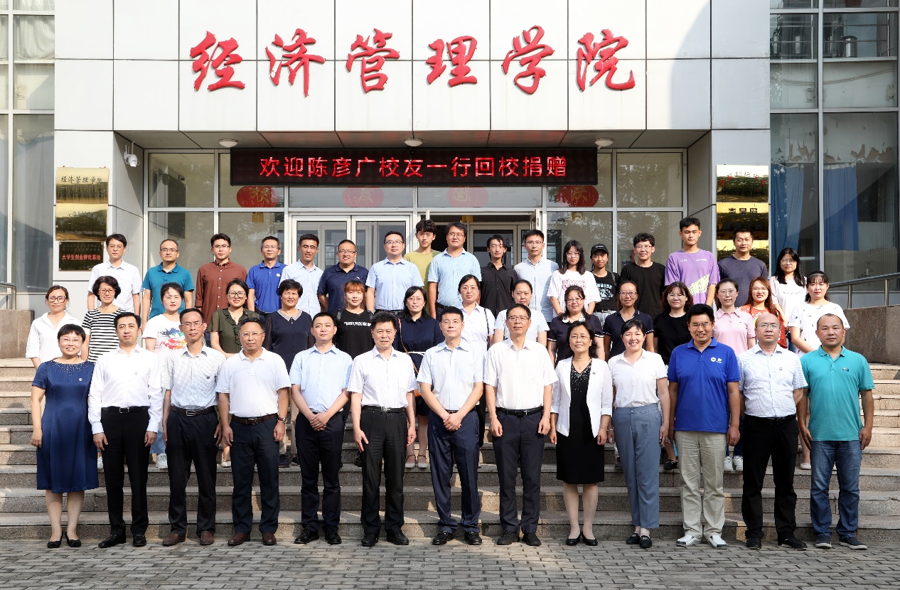 陈彦广校友与参加捐赠仪式的师生代表合影留念