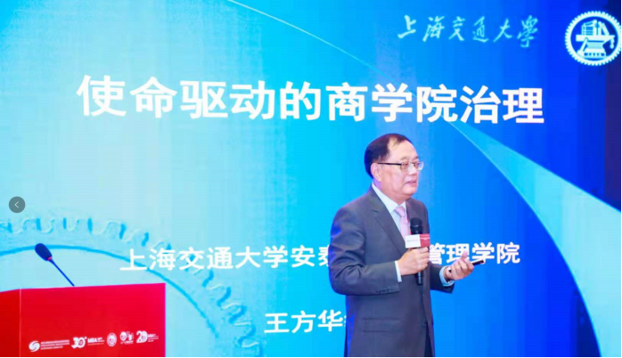 上海交通大学安泰经济与管理学院原院长王方华教授做《使命驱动的商学院治理》主题演讲