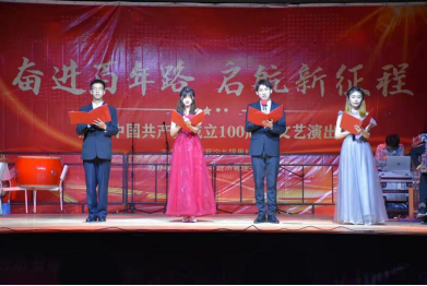 协办的“奋斗百年路 启航新征程”庆祝中国共产党成立100周年文艺下乡演出,在银里村村民大舞台拉开了帷幕,百余名师生参与筹划实施。