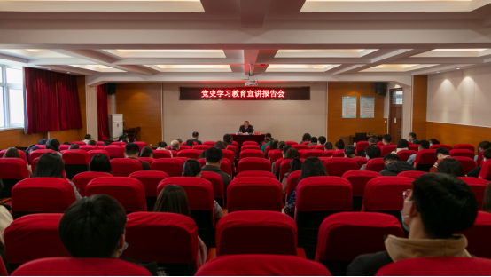 A218报告厅作党史学习教育宣讲报告。嗨皮漫画