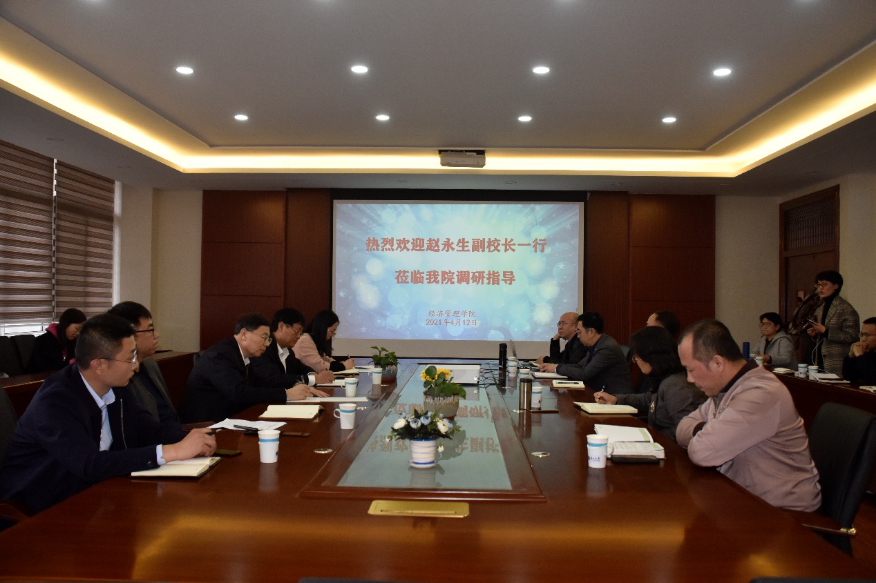 李春玲对赵校长一行的到来表示热烈欢迎,并对经管学院的基本情况进行了介绍。副院长靖鲲鹏从一流专业建设与专业评估工作开展情况、结合新文科人才培养方案的制定情况、超级金课群建设、课程思政和降低班容量工作计划、一流课程建设规划、创新创业教育开展情况以及对教学激励政策措施的建议等方面,对学院教学工作开展情况进行了汇报。各专业及实验中心负责人结合本专业实际情况,介绍了教学工作的开展情况以及遇到的问题和面临的挑战。教务处(教师教学发展中心)、创新创业教育与指导中心相关领导针对各专业的提出的问题和困惑进行了详细的解答,并同与会人员进行了深入交流和探讨。
