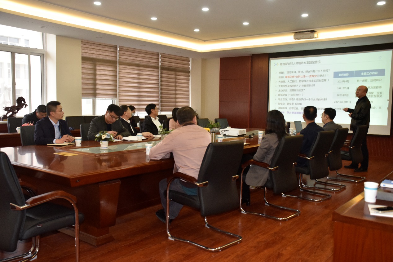 在本科人才培养中做出的贡献,希望学院进一步思考专业的发展方向,与学校强势专业融合,继续做好一流专业建设。及时了解文科(社科类)专业认证工作,尽早参与。紧抓新文科的发展机遇,结合社会发展趋势、信息技术的影响,积极推进产业学院建设,推动课程优化,培养更适应社会需求的人才。同时,要做好教师引进及师资队伍建设工作,形成与人才培养中心工作相适应的考核分配制度。