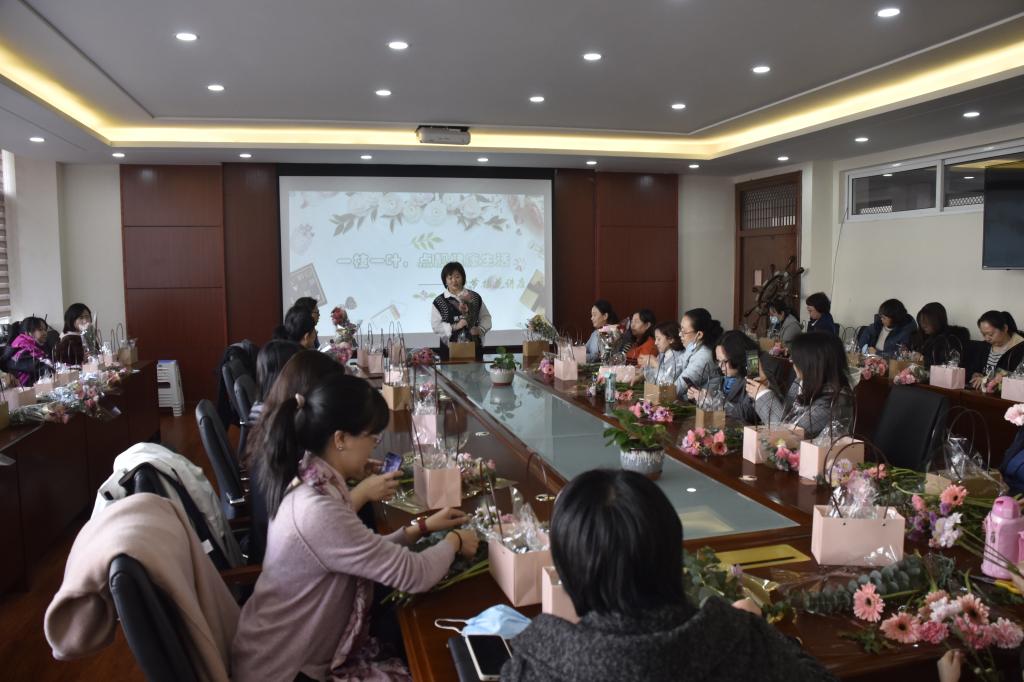 首先学院工会主席刘琳代表学院为女教职工送上节日祝福,随后开展了女神节插花讲座。