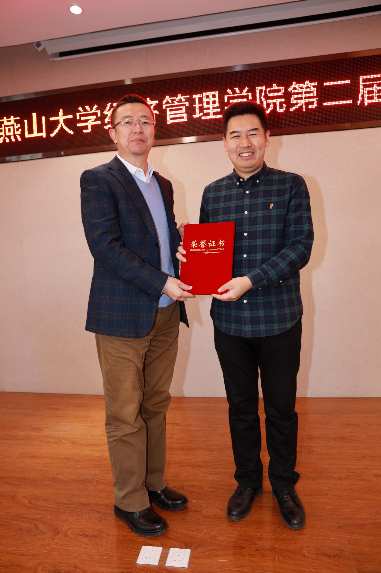 校友工作中兢兢业业、不图回报,积极策划、支持和参与学院40年院庆、学校百年校庆活动的王玖河老师颁奖,授予王老师“嗨皮漫画