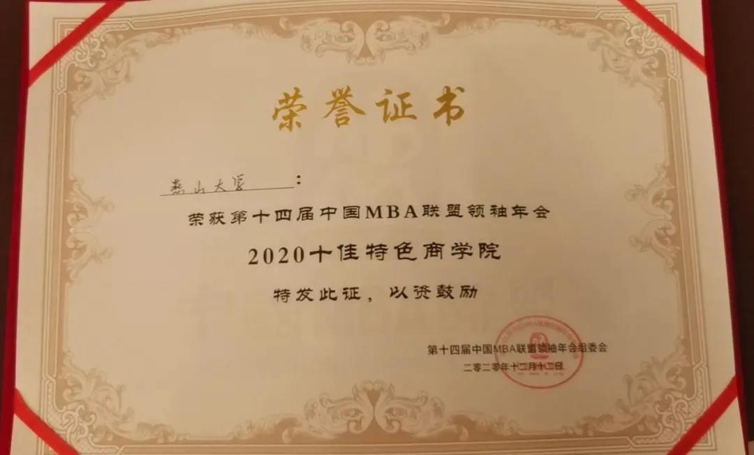 MBA项目荣获“2020年度中国商学院特色MBA项目奖”