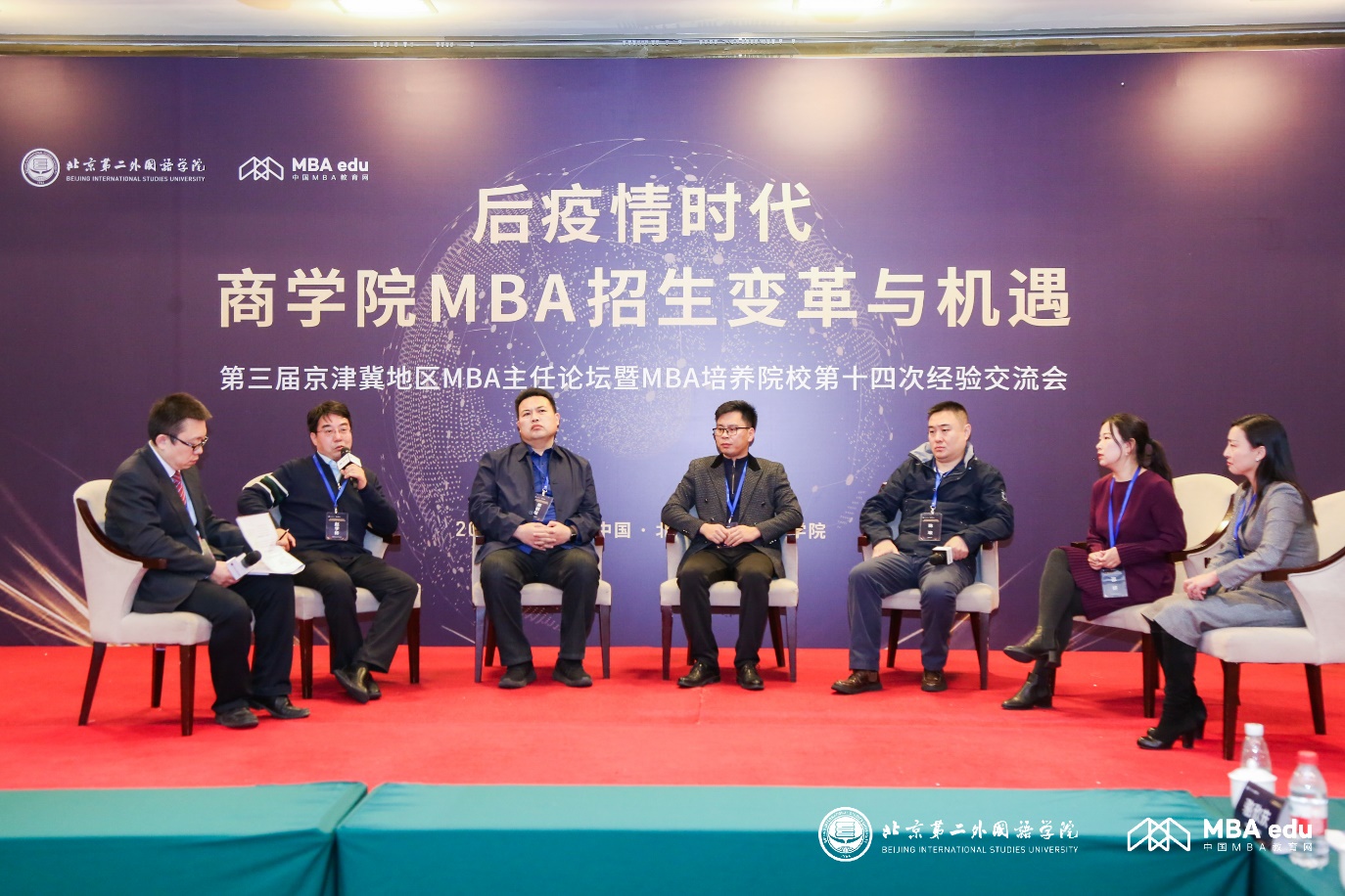 MBA教育中心主任刘海鸥,南开大学商学院专业学位教育中心主任陈琰,北京师范大学MBA教育中心副主任王璐璐,对外经济贸易大学MBA中心副主任邵妍作为发言嘉宾围绕“后疫情时代,商学院招生改革与发展之道”展开分享交流。