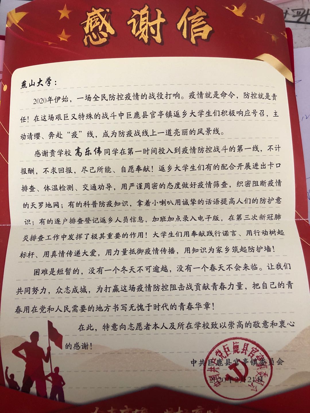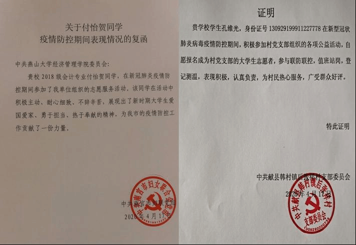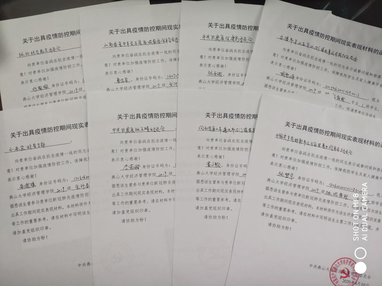 党委为了更好地了解和掌握学生志愿服务期间思想和现实的情况,以作为未来评奖评优、组织发展等工作的重要参考,近期先后向91个学生参与疫情防控的志愿服务地党组织发出了《关于出具疫情防控期间现实表现材料的函》,得到了来自多个省市区基层党组织的积极回应,纷纷表达了对学生志愿服务期间表现的认可和肯定,对学校、学院思想政治教育和人才培养的感谢和赞赏。