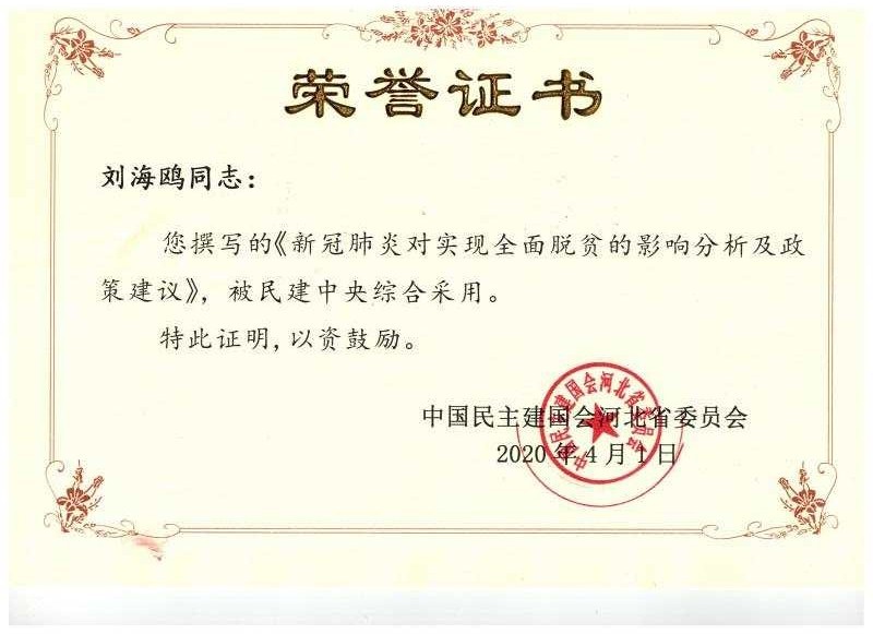 教师张亚明教授、刘海鸥副教授撰写的智库报告《新冠肺炎对实现全面脱贫的影响分析及政策建议》再次被民建中央采用,这是张亚明教授科研团队第五篇被民建中央采用的智库报告,实现了建言资政新的突破。