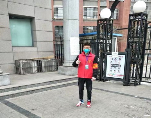 2018级工合3班刘泽宇参与了河北省唐山市本地的抗疫防疫的志愿服务活动,主要负责来往人员检查与体温检测。他为武汉和中国送来美好的祝愿:大爱无界,共克时艰,春日已来,万物更生,相信中国,加油武汉!