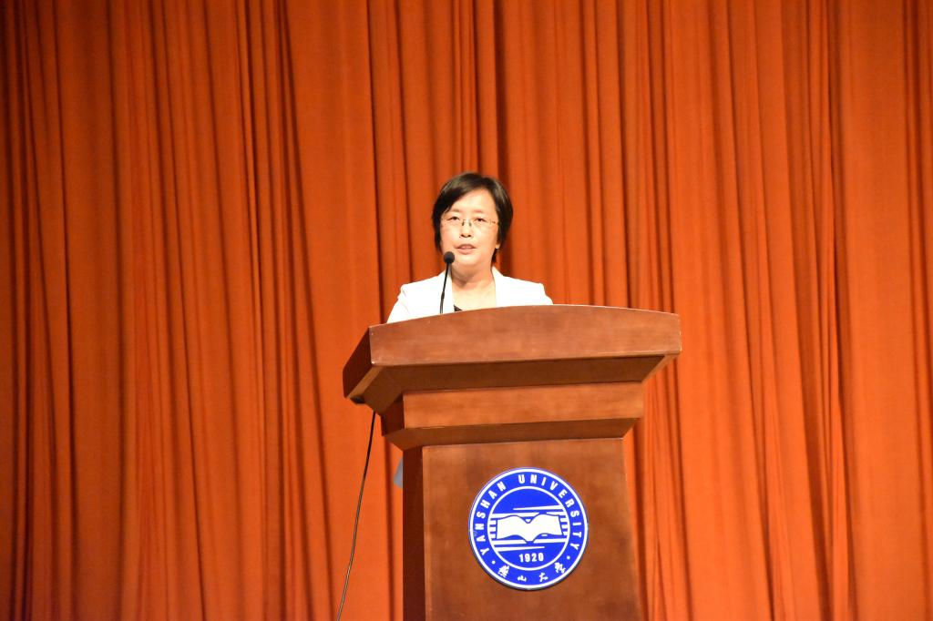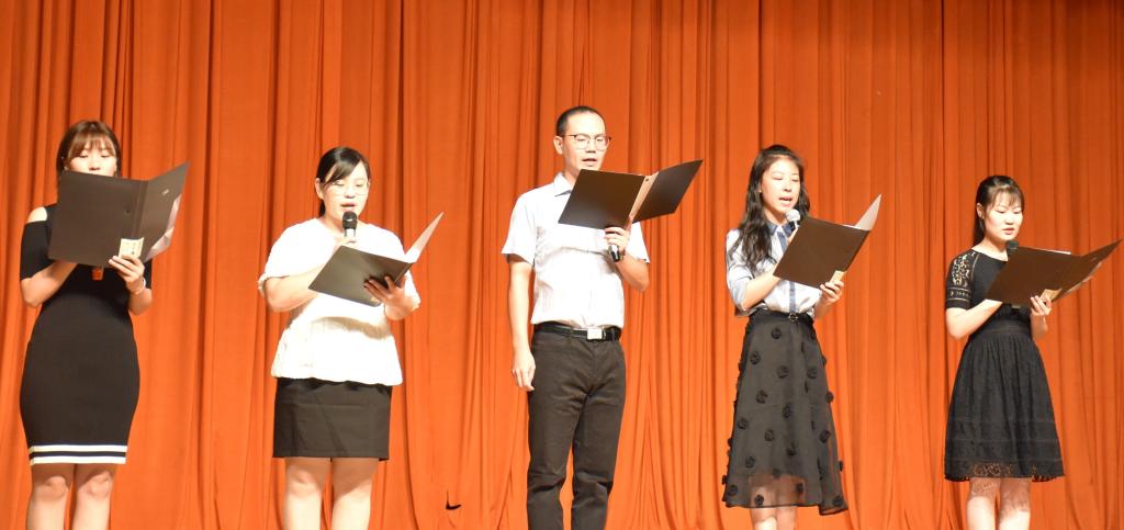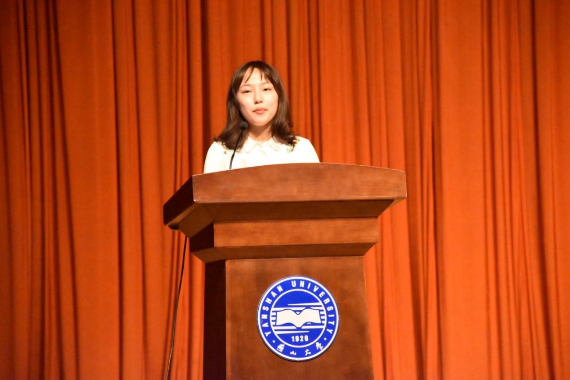 学生科科长夏亮亮老师主持。典礼伊始,与会人员全体起立,奏唱中华人民共和国国歌。学生代表发言环节,16级在校生代表赵丽茹同学总结自己三年来的学习经验,向新生们提出了几点建议:调整心态,一切归零。进入大学,从零出发,迎接新的开始,新的大学生活。第二,自律自勉,主动学习。大学生活是个主动学习的过程,少了以前耳提面命的学习生活,现在是自主学习,主动博弈的过程。第三,做好规划,积极参与。规划自己的学习生活,积极参与课外活动,锻炼自己的能力。19级新生代表闫晗同学提出了培养良好学习习惯、掌握正确学习方法、锻炼自身综合能力的建议,为同级新生指明学习方向。夏亮亮老师代表学院向恰逢今天生日的几位新生表达了美好祝愿,也向全体新生表达了美好祝福。李春玲院长在致辞中围绕“厚德、博学、求是”的校训展开,向新生提出了几点希望,希望新生们积累经验、升级装备、提高等级,厚德笃行、博学广识、求是探理,度过一个充实快乐的学习生活。新生辅导员杜蓓、李源、胡冰煜带领全体新生进行宣誓。“恪守燕大校训,秉承燕大精神;传承奋斗精神,永续报国情怀”,希望同学们可以铭记誓言,砥砺前行。开学典礼振奋人心,催人进步。经过开学典礼的洗礼,更坚定了广大燕大学子,经管学子勤奋学习、努力成才的信念。