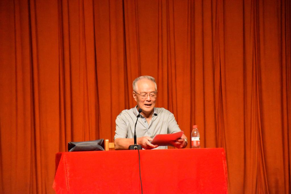 退休老教师殷际杰老先生饱含深情地讲述燕大校情校史,燕大人近百年的发展奋斗史让同学们对学校有了更深刻的认识。殷老师的话语中一字一句都满含对学校深沉的爱,新生们也被殷老的讲述感染,观众席再次爆发出热烈的掌声,为本次大会画上了一个圆满的句号。