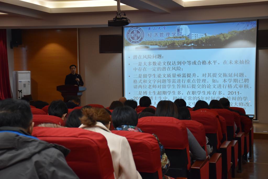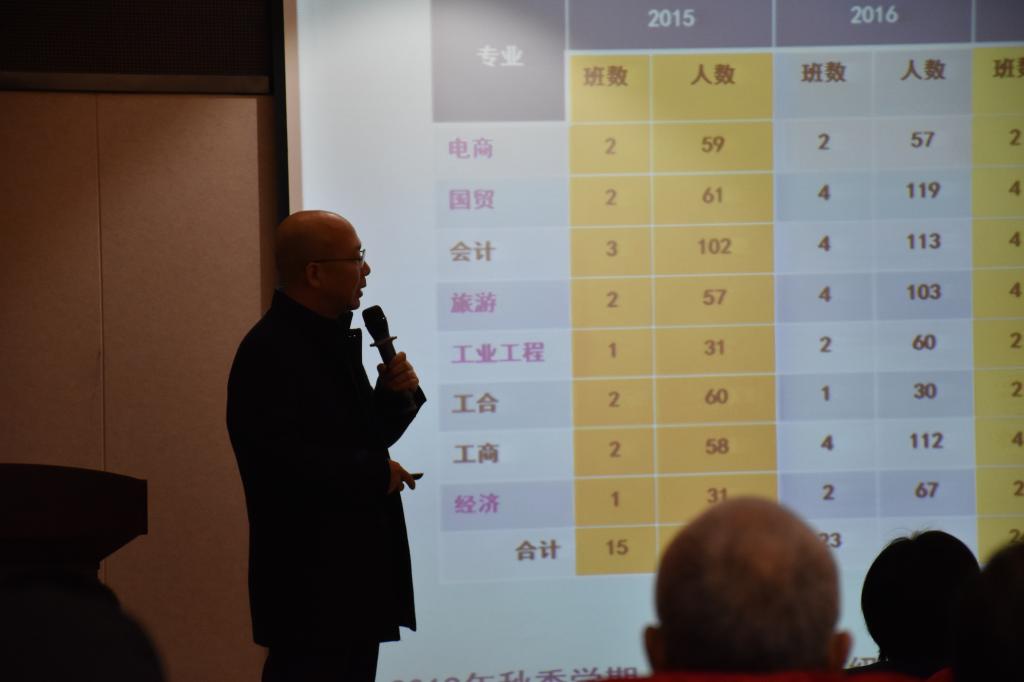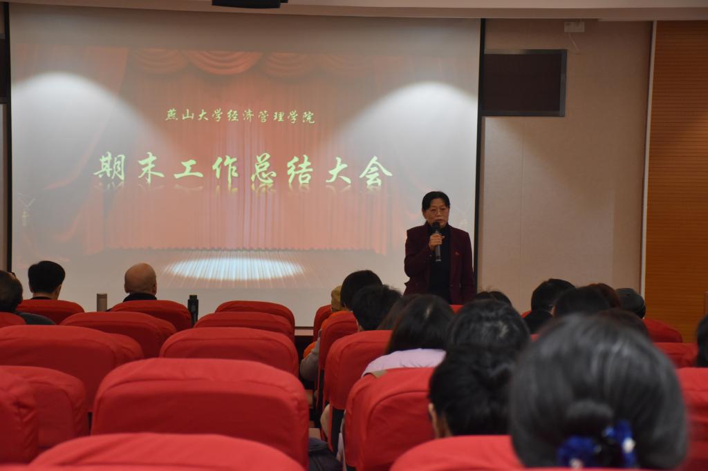 学院副院长陈晶璞总结了2018年分管的学院科研管理、研究生留学生教育工作并对假期工作进行了阶段性安排;靖鲲鹏副院长从2018年学院基本概况、主要成绩和2019年重点工作及提示四个方面全面总结了学院本科教学工作,并鼓励全体教职工携手同行,开创经管本科教育新局面;学院副院长、副书记薛传佳首先向大家传达了教代会上作出的学校2019年的发展方向和关乎每位老师利益的重要改革举措,随后他以问题为导向,用案例分析的形式作了2018年学生工作汇报。