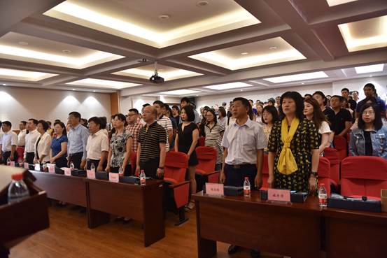 随着校歌响起,与会领导和老师为新生代表佩戴校徽,全体新生共同宣誓,“我是燕大学生,我是中国青年。恪守燕大校训,铭记恩师教导....厚德博学,行方智圆;求是创新,立地擎天”响彻整个报告厅。2018级新生代表来自大唐集团的杨雨茜做了《把管理文章写在中国大地上》的发言,代表全体新生表达了渴望成长、家国情怀和责任担当的学子热情。