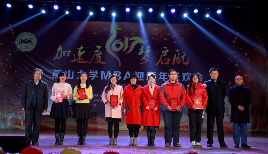 在欣赏精彩表演的同时,晚会设置了四次抽奖环节,由知名企业、往届校友和在校MBA同学捐赠的总价值超八万元的奖品也被同学们收入囊中, 当晚可谓是精神物质双丰收。晚会全程进行了实时网络直播,线上线下最高超过800多人观看本场晚会。