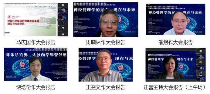 上午的大会报告由浙江大学汪蕾教授主持。围绕着国家自然科学基金重点专项项目,浙江大学、浙江工业大学马庆国教授的报告为《神经管理学的深度解读》和《神经科学驱动的管理决策基础理论与方法研究》,北京大学周晓林教授的报告为《基于神经数据与关联行为的群体协同决策机制、建模与决策方法研究》,上海外国语大学潘煜教授的报告为《基于多模态神经数据与行为的智能信息系统用户感知决策机制与系统优化设计方法》,清华大学饶培伦教授的报告为《神经数据驱动的智能制造场景下的生产管理机制与方法研究》,福州大学王益文教授的报告为《基于神经与行为耦合的消费者购买决策机制、理论与应用研究》。