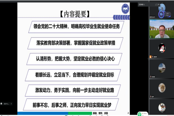 通过线上方式举办2022秋季学期就业洽谈会动员大会暨就业指导主题讲座。经管学院正处级辅导员刘琳、招生就业处副处长陈树冬、毕业班辅导员和毕业生代表参加了会议。会议由经管学院党委副书记张志超主持。