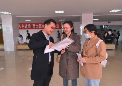 洽谈会上,党委书记张振华、院长李春玲、正处级辅导员刘琳、党委副书记张志超、各系负责人先后来到会场,积极与招聘企业进行交流对接,了解企业用人需求,向用人单位介绍学院的专业和特色,并根据企业的需求推荐合适的学生。洽谈会上,学院领导主动与求职学生进行沟通交流,询问学生的就业意向,鼓励学生把握机会,积极投递简历。毕业班辅导员李宁、张梦、邵将全程坚守在招聘会现场,积极解答求职学生的问题,及时向学生传递招聘企业的相关信息,对参加招聘会的“宏志助航”学生做了针对性服务。