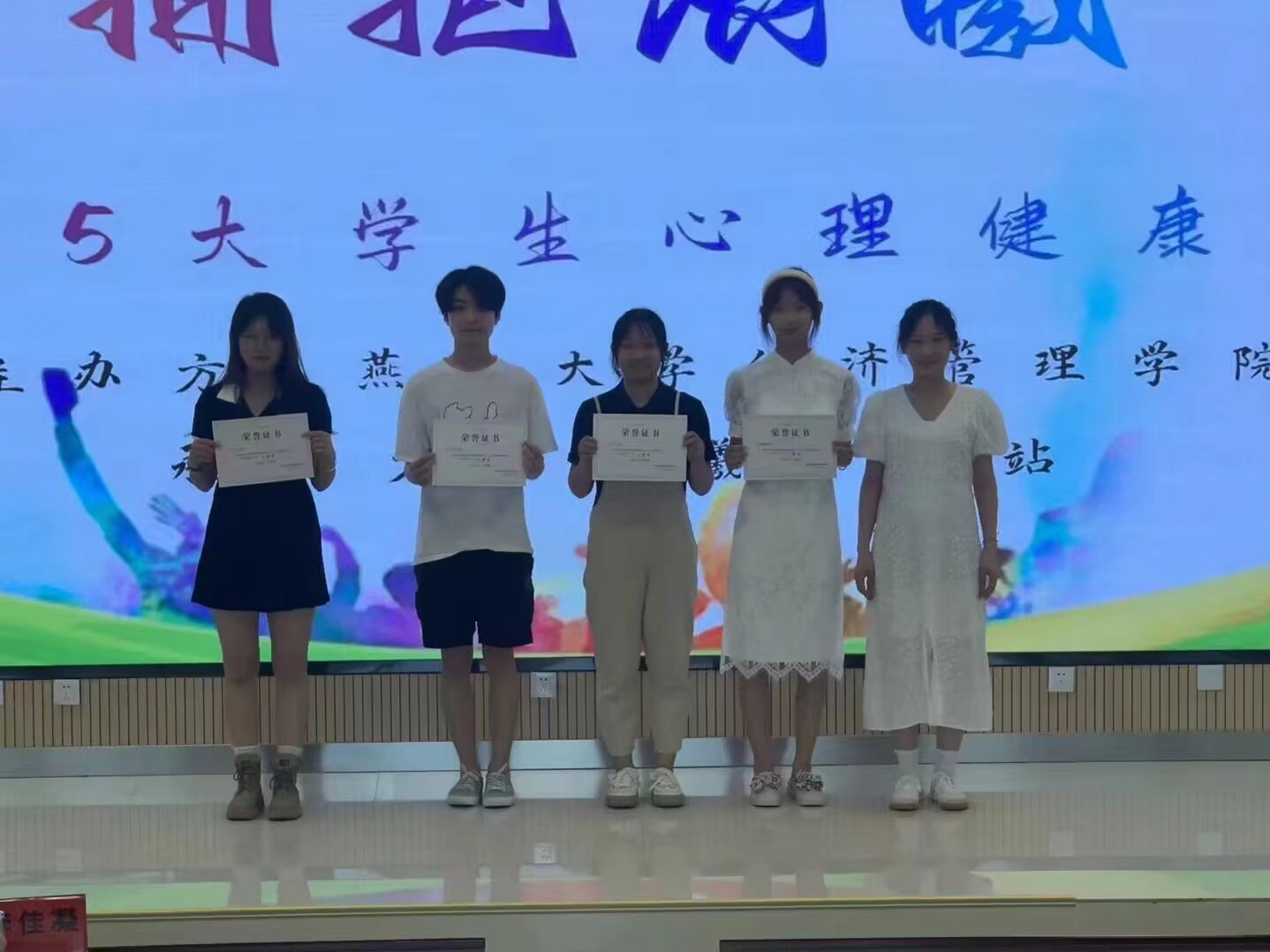 感谢学院和各位老师对525大学生心理健康节系列活动的大力支持,感谢每一位工作人员的辛苦努力,感谢各班同学们的积极参与。在大家的共同努力下,关怀大学生心理健康的工作得到进一步发展,晨曦加油站一直都走在传递爱与正能量的路上。希望同学们都能够呵护身心健康、热爱美好生活,活出燕大学子的风采!