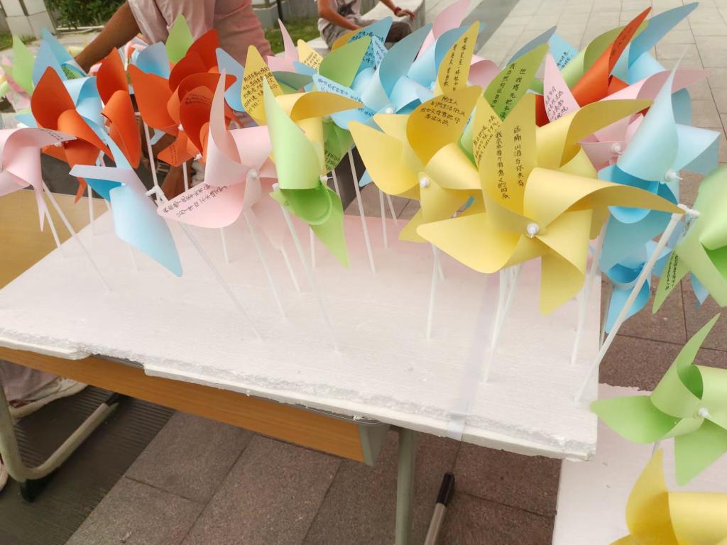 “便签信使”活动通过满载心理知识与温暖善意的便签呼吁同学们关注心理健康,正视心理问题,传递爱与正能量;“风车告白”活动旨在鼓励大家勇敢表达自己心中的爱,无论是亲情、友情和爱情,还有更重要的是爱自己。同学们在缤纷多彩的风车和温暖善意的话语鼓励下敞开了心扉,勇敢表达自己,收获了满满的爱意与感动。