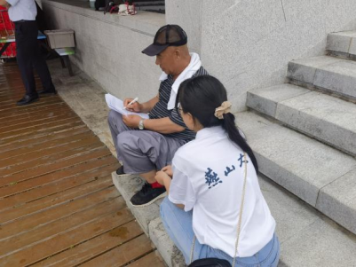 7月22日,卢老师给队员们放了一天假。“让你们的手歇一歇。“卢老师笑着对大家说。手闲下来了,脚就不能停。小分队利用这一天走访社区、公园的唐山群众,通过谈话聊天的方式普及推广皮影戏,并通过调查问卷的形式了解群众对皮影带动乡村经济发展的展望与建议。