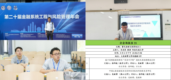 金融学科与国内其他高校的交流,这也是吴献博老师在学院大力资助下参与的又一次重要学术会议。此前,在2022年11月,吴献博老师参加了由河北经贸大学、河北省金融学会主办的“第六届京津冀经济与金融创新发展论坛”,并在平行论坛做了题为《基于信息熵的我国金融体系内关联性研究》的学术报告,获得了优秀论文三等奖。