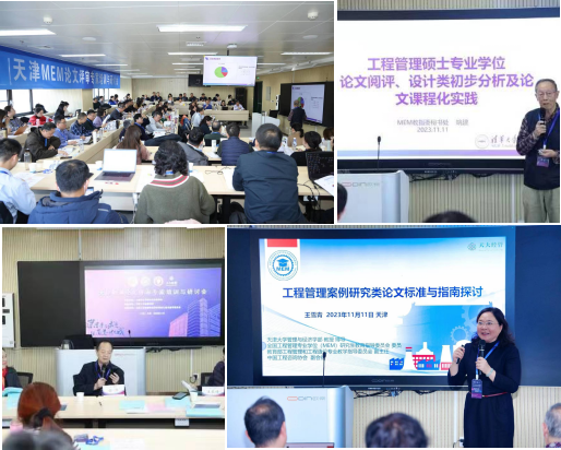 会上,工程管理专业学位研究生教指委秘书长、清华MEM教育中心张伟教授做专题报告,就MEM专业学位论文基本要求、工作指南,MEM专业学位论文水平评价、专业学位论文体现研究生能力评价表、MEM专业学位论文常见问题进行解读和分析,重点为各高校论文指导教师讲解专题研究类、设计类及案例研究类论文在选题、形式、水平等方面的要求,强调论文指导和审阅过程应遵循的基本原则和论文水平的判定方法。教指委秘书处顾问姚建教授利用清华大学MEM专业学位论文的相关数据,从论文涉及行业及工程领域、选题范围和内容、论文类别细分、论文应用的工具和方法、论文初评结果、论文撰写呈现的趋势与新特点等角度,