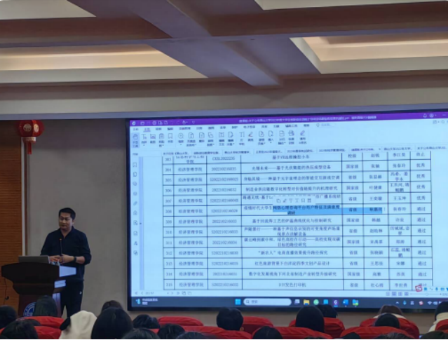 于11月30日在经管楼A218学术报告厅大学生创新创业训练计划项目申报动员会。此次动员会旨在鼓励学生积极参与创新创业训练计划,提升实践能力和创新思维。此次活动受到同学们的热烈响应,能容纳120多人的报告厅,有150多名学生参加。