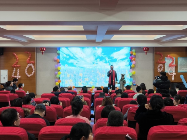 演出结束后,随后开始的是欢快愉悦的趣味游园会环节,共设置了“步步高升”“新年快乐”“福星高照”和“好运连连”四项游戏,内容涉及趣味答题、趣味运动和亲子活动等方面。丰富的游戏内容成功调动了老师们的参与积极性,游园会现场气氛热烈,大家在欢声笑语中喜迎新年到来。