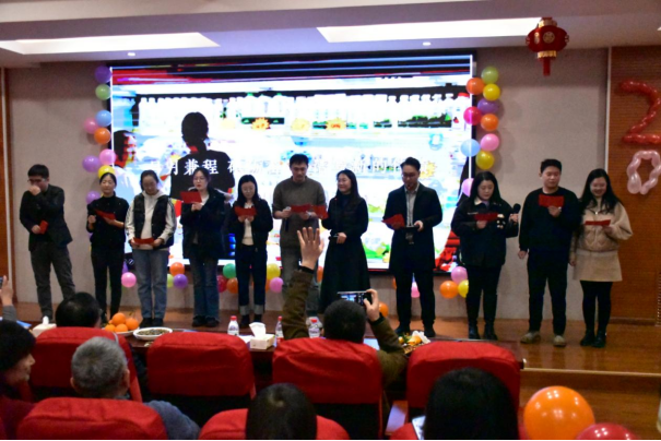 活动伊始,院长李春玲代表领导班子致《新年贺词》,她满怀深情的回顾了学院一年来取得的骄人成绩,对即将到来的2024年作出展望,并为全体教职工送上了新年祝福。随后,党委书记张振华和院长李春玲为荣获“嗨皮漫画