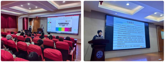 王主任用幽默的语言为大家深入浅出的讲解了女性高发疾病的相关知识,如宫颈癌、乳腺癌等疾病的病因、预防及筛查;给女教工提出关于女性常见疾病日常保健、日常饮食调理等女性职工关注度很高的相关保健建议;现场互动频繁,氛围热烈。