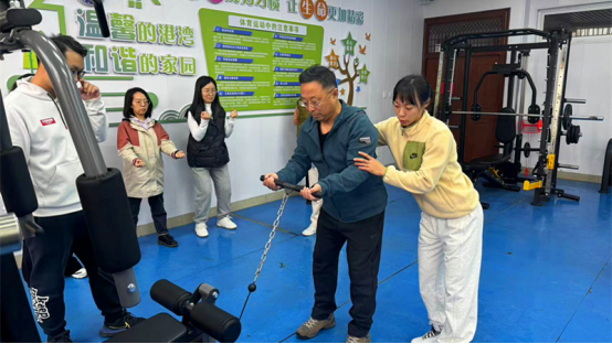 热身结束后是健身器材使用培训,刘颖以现场示范的形式向教师们详细讲解健身器材的功能作用、使用方法以及正确的姿势动作、运动时的发力要点等注意事项,随后又逐一指导教师们实际操作,有效帮助大家熟悉掌握健身器材的正确使用方法。培训过程中,针对教师们提出的“如何缓解因久坐少动引起的肩颈疼痛、肌肉酸疼”等问题,刘颖给大家一一解答并有针对性的教授了几个简单、实用、易学的健身动作,方便教师们在办公之余锻炼,随时随地健身。长达一个半小时的活动在轻松愉悦的氛围中结束,教师们纷纷表示受益匪浅,希望以后继续组织类似活动。