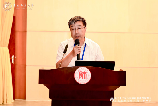 2024年5月25日,由教育部旅游管理专业国家虚拟教研室·全国高校旅游院校联盟主办,各省(市、自治区)高校旅游管理教学指导委员会、华中科技大学出版社等单位协办,贵州师范大学国际旅游文化学院承办的第二十二届全国高校旅游学院院长、系主任及专业负责人联席会在贵阳召开。出席大会的领导包括:贵州师范大学校长张绍东,教育部旅游管理专业国家虚拟教研室主任、教育部高校旅游管理类专业教学指导委员会副主任马勇,教育部高教司原二级巡视员张庆国,贵州省文化和旅游厅党组书记、厅长吴涛,贵州省教育厅副厅长(正厅长级)陈云坤,共青团贵州省委副书记杨杨。