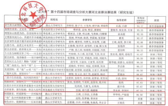石蕊老师、白静老师指导的胸有成竹队(23级管科乔彤佳、23级管科陈子宇、23级物流管理王昱杰、22级管科胡宇涵、22级管科贾晓然),凭借作品《碧竹舞风破塑影,生态诗篇绘心间--“以竹代塑”背景下竹质产品市场前景及消费者购买意愿调研分析》在全国总决赛150支参赛团队中脱颖而出,以全国总决赛小组第一的成绩成功晋级全国八强,并最终荣获全国总决赛一等奖(全国90项,1.9%比例)。王晶老师、涂闯老师、毕华玲老师、卢福强老师、郑涛老师、王艳亮老师指导的作品分别获全国三等奖