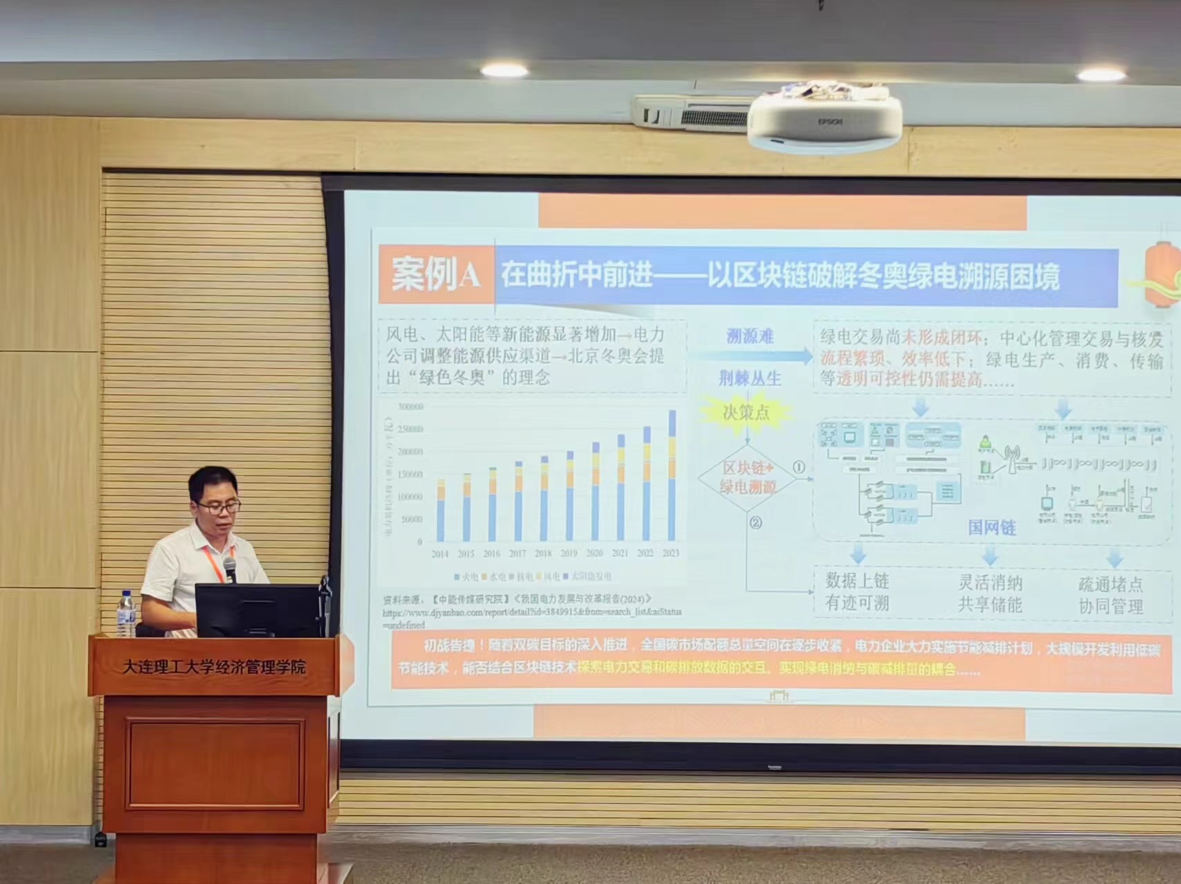刘海鸥教授以案例《“绿”由“新”生,以“智”提“质”:国网区块链科技数字化与绿色化双化协同发展之路》进行了案例撰写分享,并与点评嘉宾进行了讨论与交流。