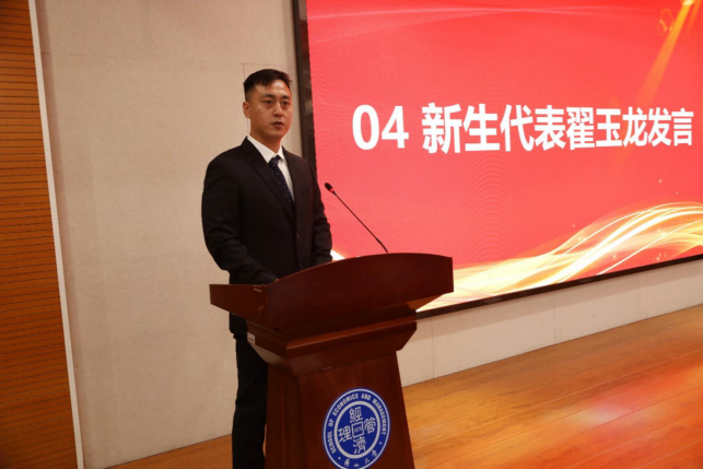 教师代表毛清华教授向全体同学提出三点希望和建议,一是培养家国情怀,二是提升能力,三是反思人生,并代表全体教师表示会以持续提升教学水平,为建设特色鲜明、国内一流、世界知名的研究型大学贡献力量。
