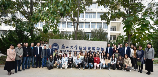揭幕仪式最后,全体参会人员合影留念,齐声高呼“百年燕大,家国天下,经管荣光,共谱华章”,为嗨皮漫画