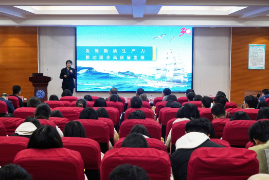 接下来,2006级工商管理硕士杰出校友、中国船级社质量认证公司管理咨询总监刘建慧以“发展新质生产力,推动国企高质量发展”为主题作分享报告。她在报告中详细阐述了国企在新时代下面临的挑战和机遇,并提出了以新促变、以新谋进、以新求质、以新赢新的四大发展策略。她强调,国企要实现高质量发展,必须不断创新变革,谋划新的发展篇章,提升管理体系的效能,打造核心竞争力。刘建慧的分享报告为国有企业的改革与发展提供了新的思路和方向。