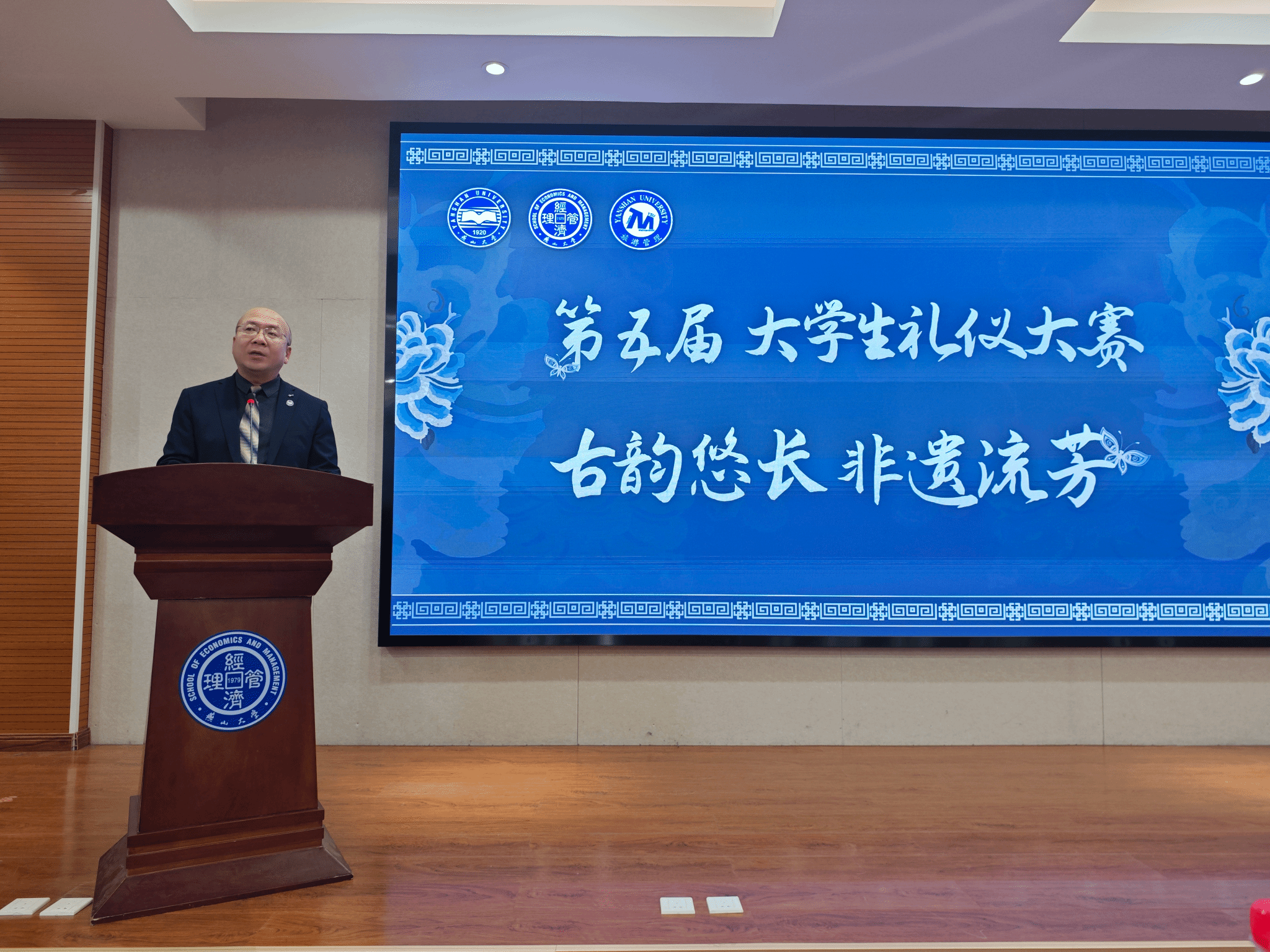 副院长靖鲲鹏上台致辞,表达对本次比赛的美好祝愿以及对各组参赛选手的殷切期望。