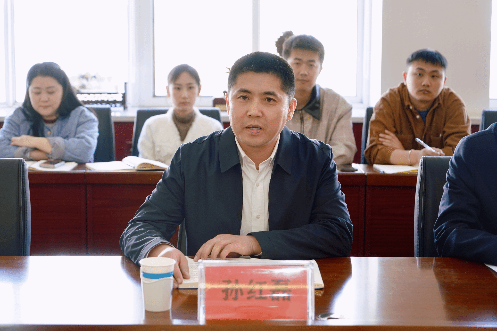 李春玲代表学院师生热烈欢迎孙红磊到任,同时代表学院领导班子作表态发言,表示将全力支持新任党委书记的工作,与班子成员一道,携手全体师生,共同努力推动学院持续、稳定、健康发展。