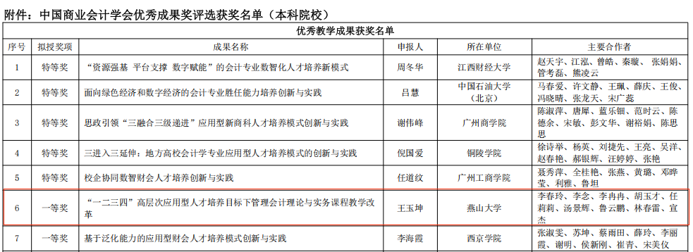 会计系教师王玉坤团队荣获优秀教学成果一等奖、李念荣获优秀著作二等奖。以上荣誉不仅是对获奖教师个人(团队)专业能力和辛勤付出的高度认可,也是会计系在教学与科研方面取得的又一重要突破。