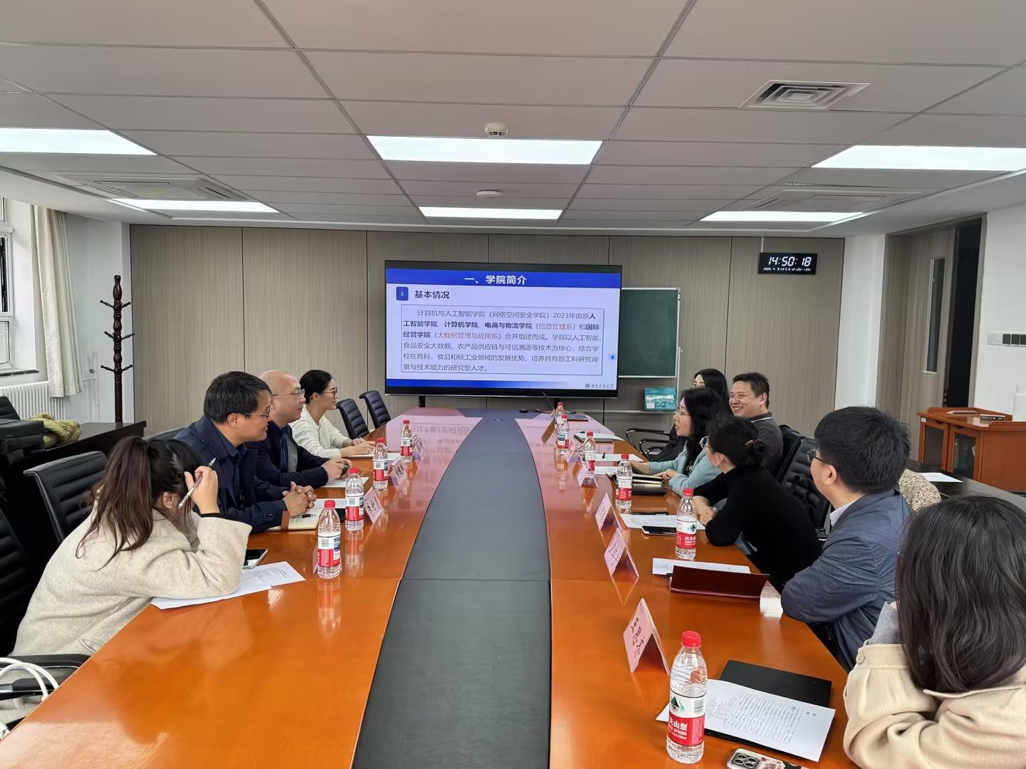 副院长靖鲲鹏、电子商务系党支部书记李世勇、电子商务系主任宓翠和副主任刘琳于2025年4月9日赴北京工商大学计算机与人工智能学院调研交流。北京工商大学计算机与人工智能学院副院长孙晓荣、管理科学与工程系主任李勇、管理科学与工程支部书记蔡圆媛、电子商务专业主任董红宇、大数据管理专业主任焦子豪和计算金融专业主任王思齐参加了此次座谈交流。
