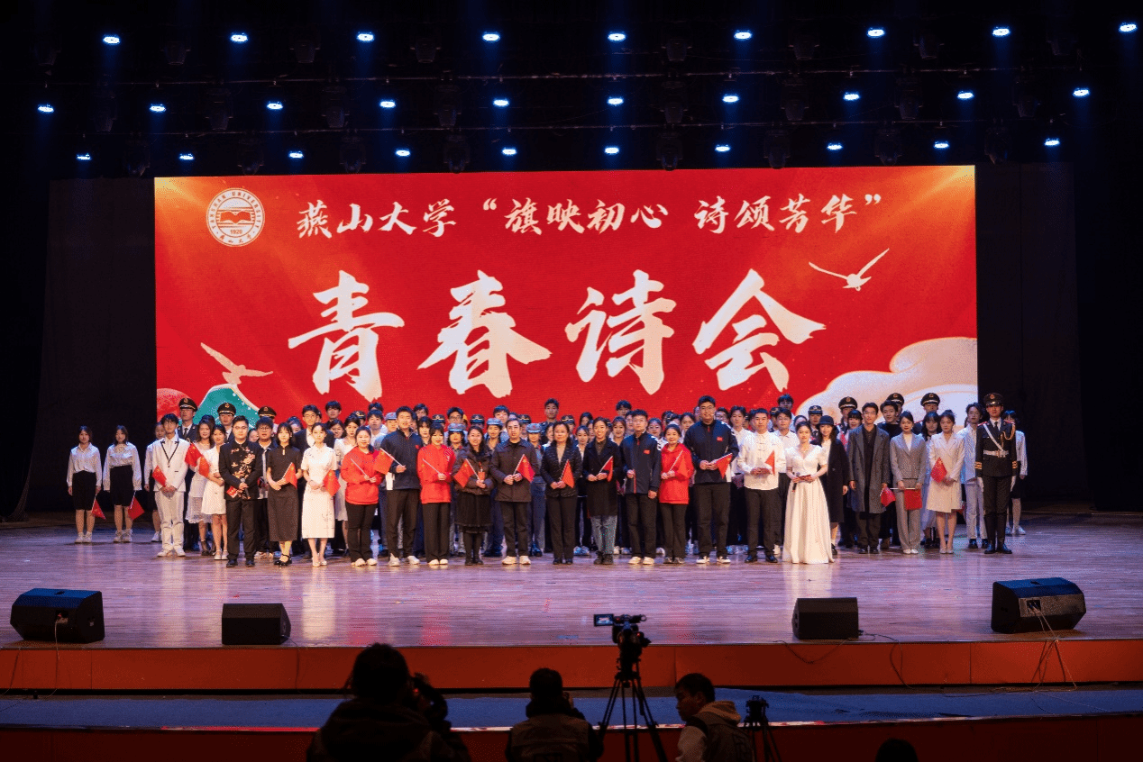 第三篇章“逐梦·旗耀未来”以未来为约,在红旗的光芒中点燃青春的火炬,让信仰力量在逐梦中永续传承。《珍宝》致敬了燕大人百年来的精神宝藏,带领观众探寻三代青年接力熔铸的报国长诗;国旗护卫队以庄严队列演绎《守护》,彰显燕大人对国旗的赤诚守护;青春誓言《脊梁》以铿锵誓言回应“强国有我”的时代召唤;一首《红旗飘飘》向伟大祖国表达深沉而热烈的爱与祝愿,将此次诗会推向高潮,感召燕大青年以国旗为引领,赓续红色血脉,书写青春答卷。