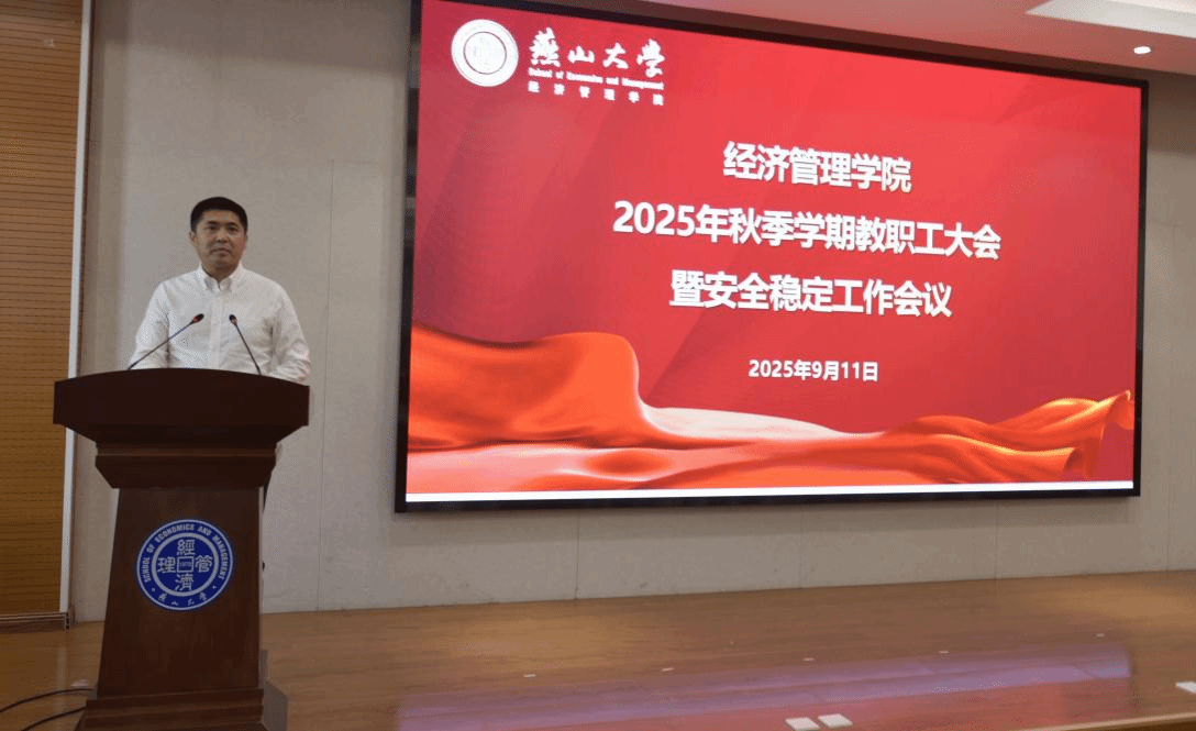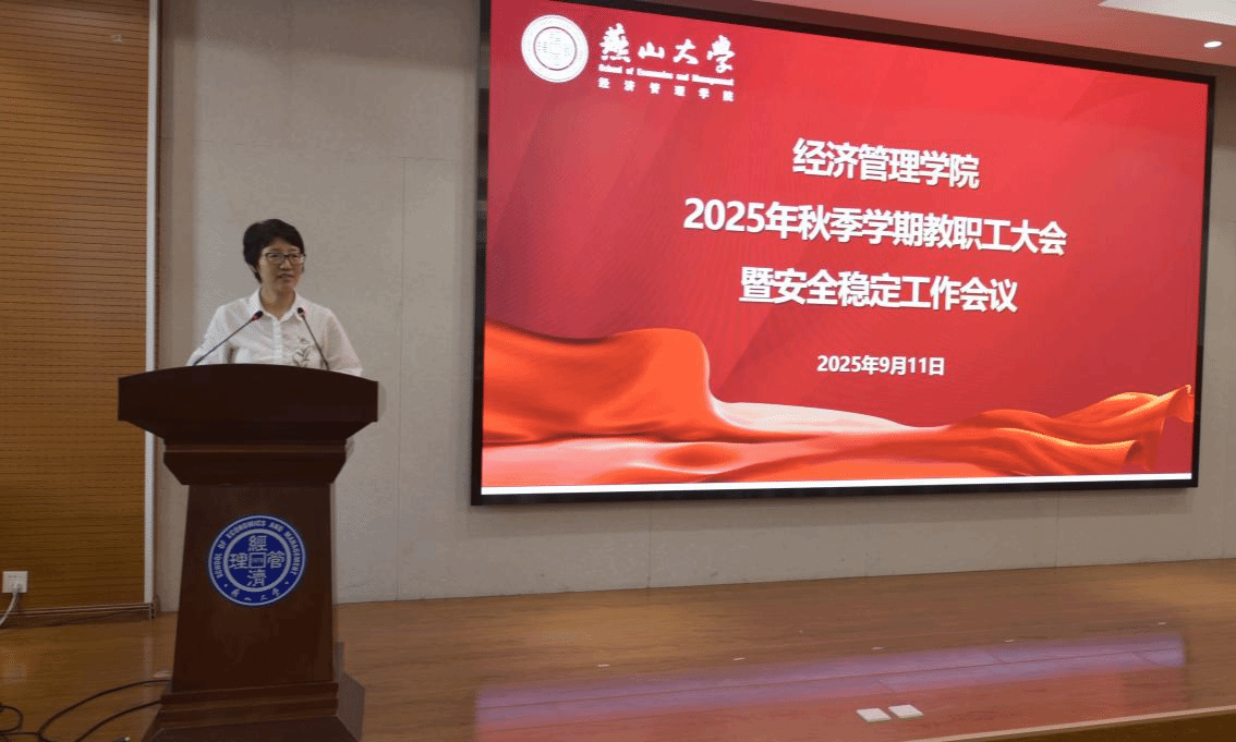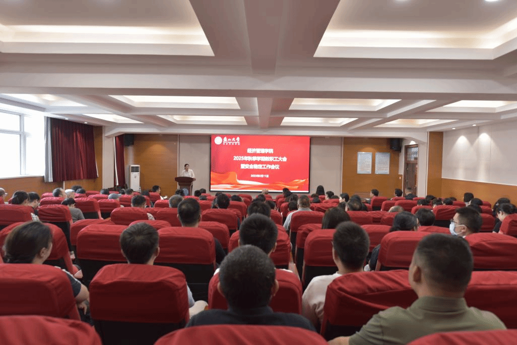 在经管楼A218报告厅召开2025年秋季学期教职工大会暨安全稳定工作会议,学院领导班子成员、全院教职工参加了会议。会议由学院正处级专职辅导员杨小丽主持。