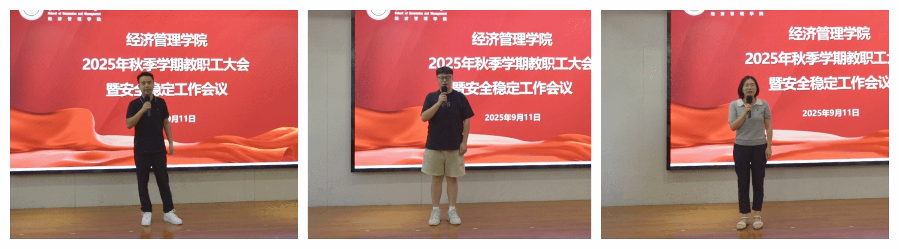 在新入职教职工见面环节,李斌、黄永健、王未未3位老师分别上台做自我介绍,他们带着扎实的专业能力与饱满的工作热情,为学院教学科研、管理服务等各项工作注入新动能。