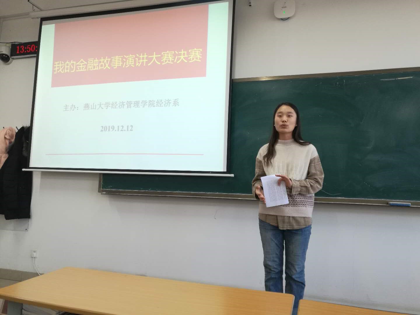学生积极报名参加。在演讲稿提交后,经过教师评比选出了15位同学参加决赛。决赛中同学们充分展示了对经济和金融的浓厚兴趣。