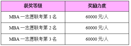 的MBA考生,按联考成绩由高到低排序,前三名每人将获得6万元奖励。本奖学金评审工作在新生入学后进行。