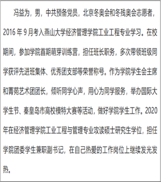 研究生冯益为被党中央、国务院授予北京冬奥会、冬残奥会突出贡献个人