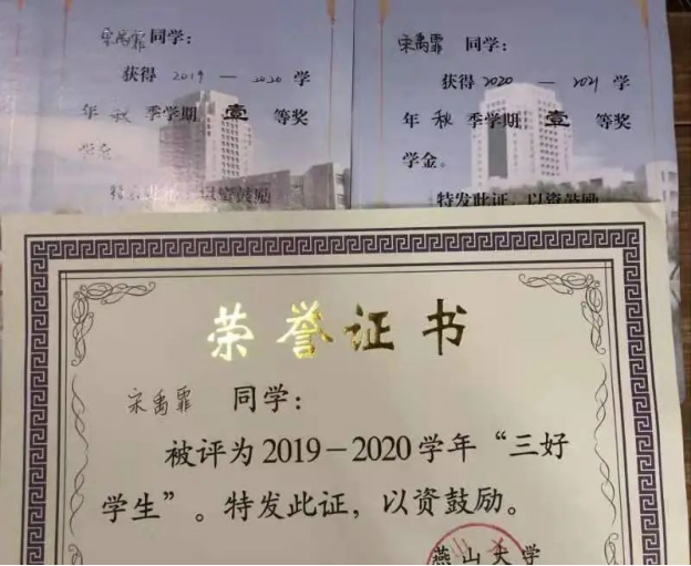 三好学生,多次获得校级一等奖学金。